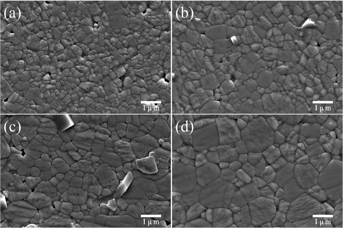 SEM images with as sintered surfaces of the BNT-6BT-xBCO ceramics with different BCO concentrations. |