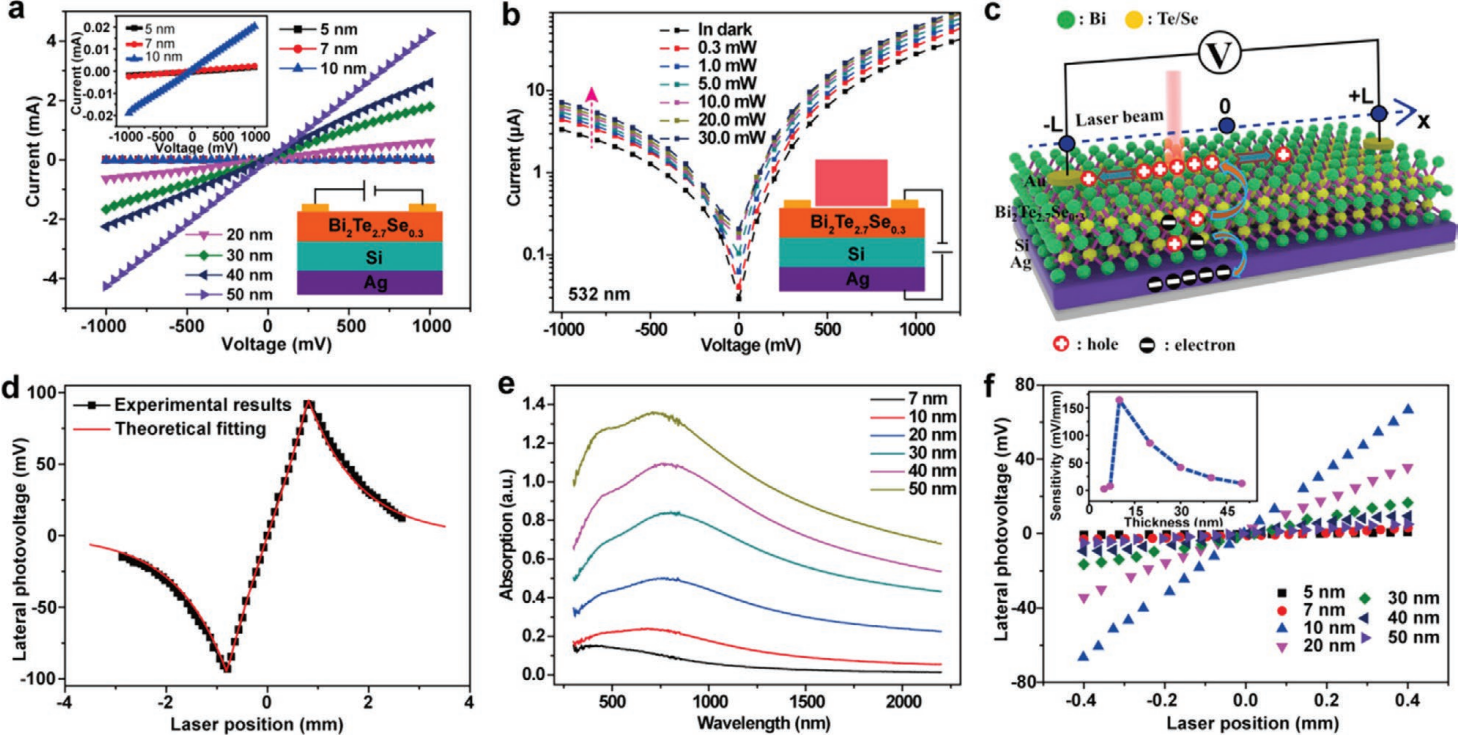 The photodetector exhibits high photoelectric performances in a wide broadband ranging from visible to near-infrared with a photoresponsivity of up to 908.2 mA W-1, and a detectivity of up to 1.889 1013 Jones.