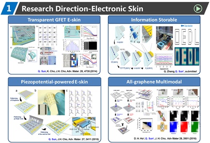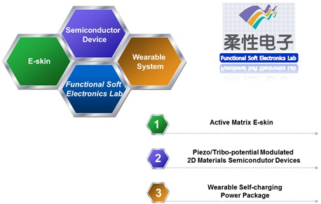 主要研究内容:以有机电子器件,石墨烯以及其他二维材料电子器件为基础,结合压电电子学或摩擦电子学,开发更具优势的电子皮肤,并为电子皮肤的多功能化提供解决思路;开发可用于电子皮肤传感器的新材料、新结构;阵列型电子皮肤的优化设计和开发等。