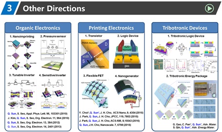 主要研究内容:以柔性电子为基础,借助新型柔性材料或结构设计,开发针对能源收集、存储等多功能耦合的可穿戴设备;为柔性传感器、纳米发电机和超级电容器等相关器件的可延展性提供解决思路。