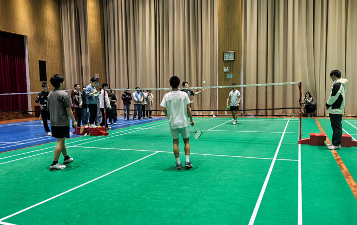本届比赛共有14支队伍参赛,运动员们步伐灵巧、身手敏捷,展现出了高超球技和顽强斗志,博得现场观众阵阵喝彩。经过两轮小组赛激烈的比拼,“人不狠话多队”与“大队”两支队伍会师决赛。决赛于12月2日中午12:30在学术报告厅羽毛球场圆满举办。